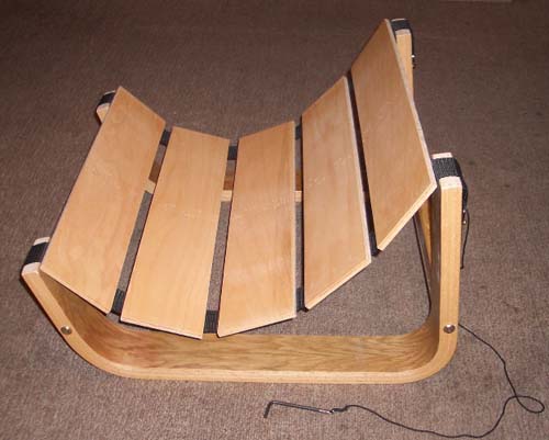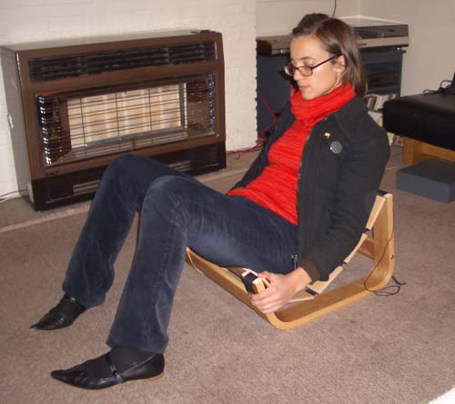 Here’s a photo of it in use (thanks Bianca). Due to its IKEA heritage the chair can be dismantled and stored flat; a suitable allen key is attached.