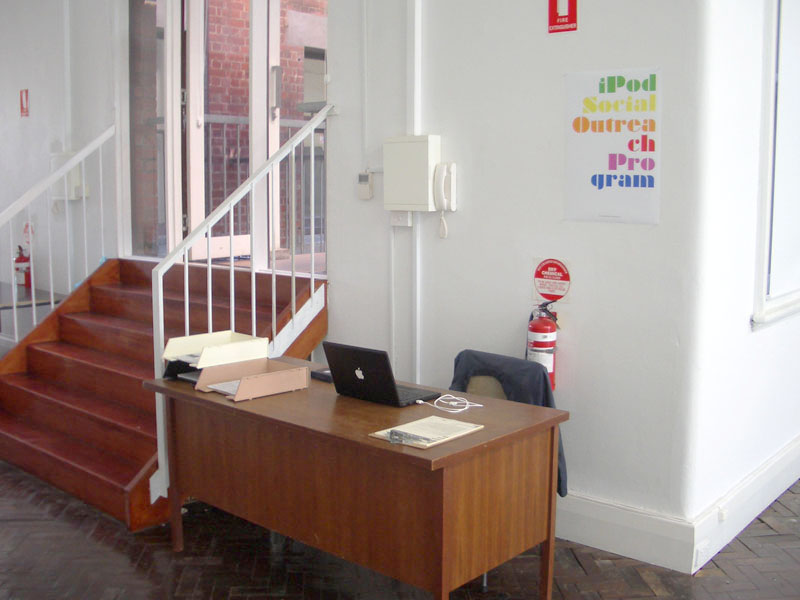 The iPod Social Outreach Program (iSOP) operated as a free repair centre for iPods. Repairs were carried out by myself, an untrained amateur and were informed by user generated information obtained from various internet sources. Based in a commercial Melbourne gallery, iSOP extended into the broader community through promotional posters, classified advertisements, on-line forums and articles in the local paper. Knowledge generated through the repair process was disseminated back into the online community through a dedicated project blog.