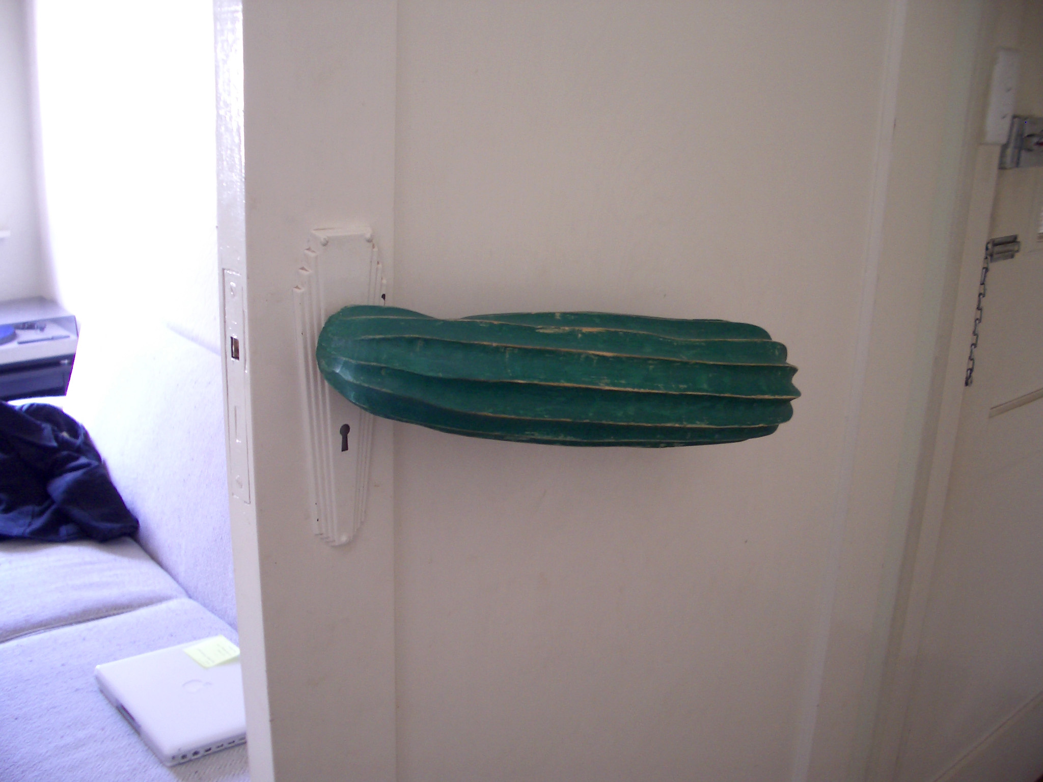 Installed in my apartment. Constructed from the arm off a wooden cactus decoration found in hard rubbish.